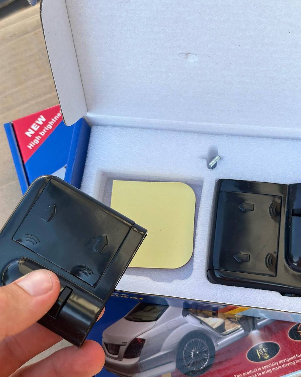 Кріпиться в решітку автомобіля. Має сенсор для автоматичного відкривання та закривання бокових фіксаторів
