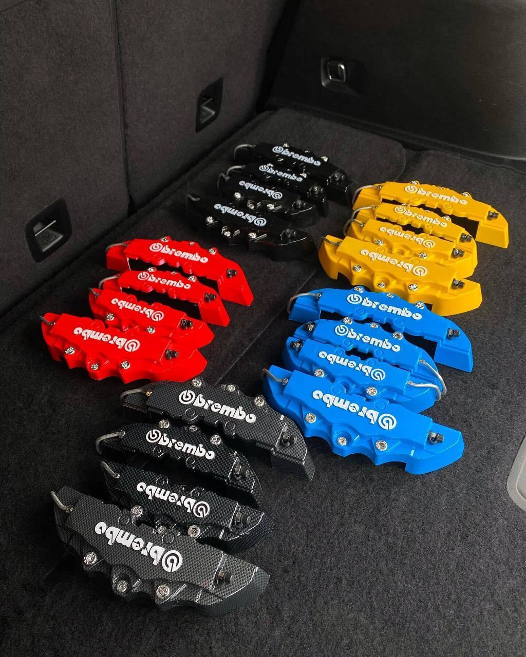 Синій , жовтий , червоний, чорний і карбон