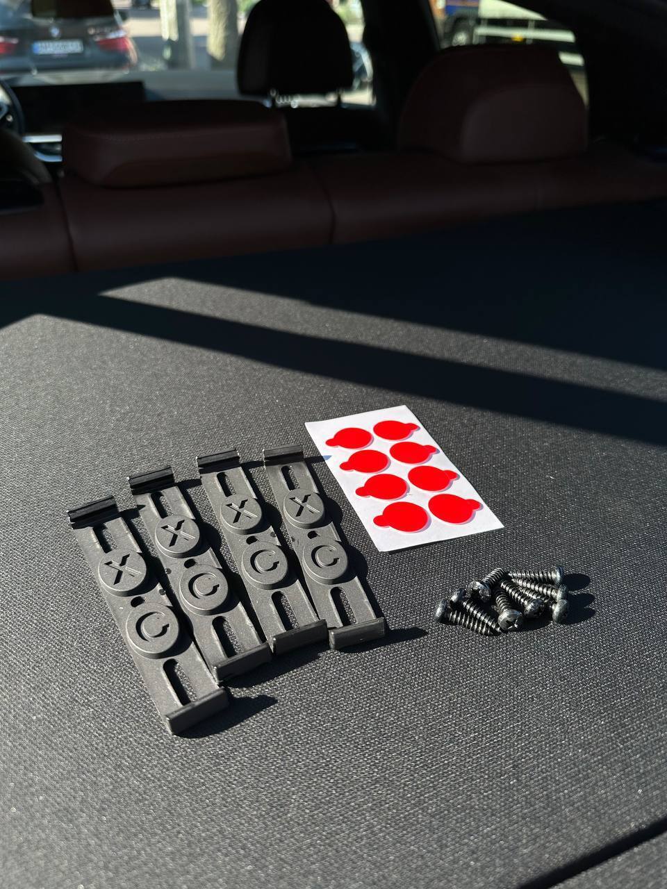 Кріпиться за допомогою клейкої ленти на заднє скло автомобіля ( в комплекті )