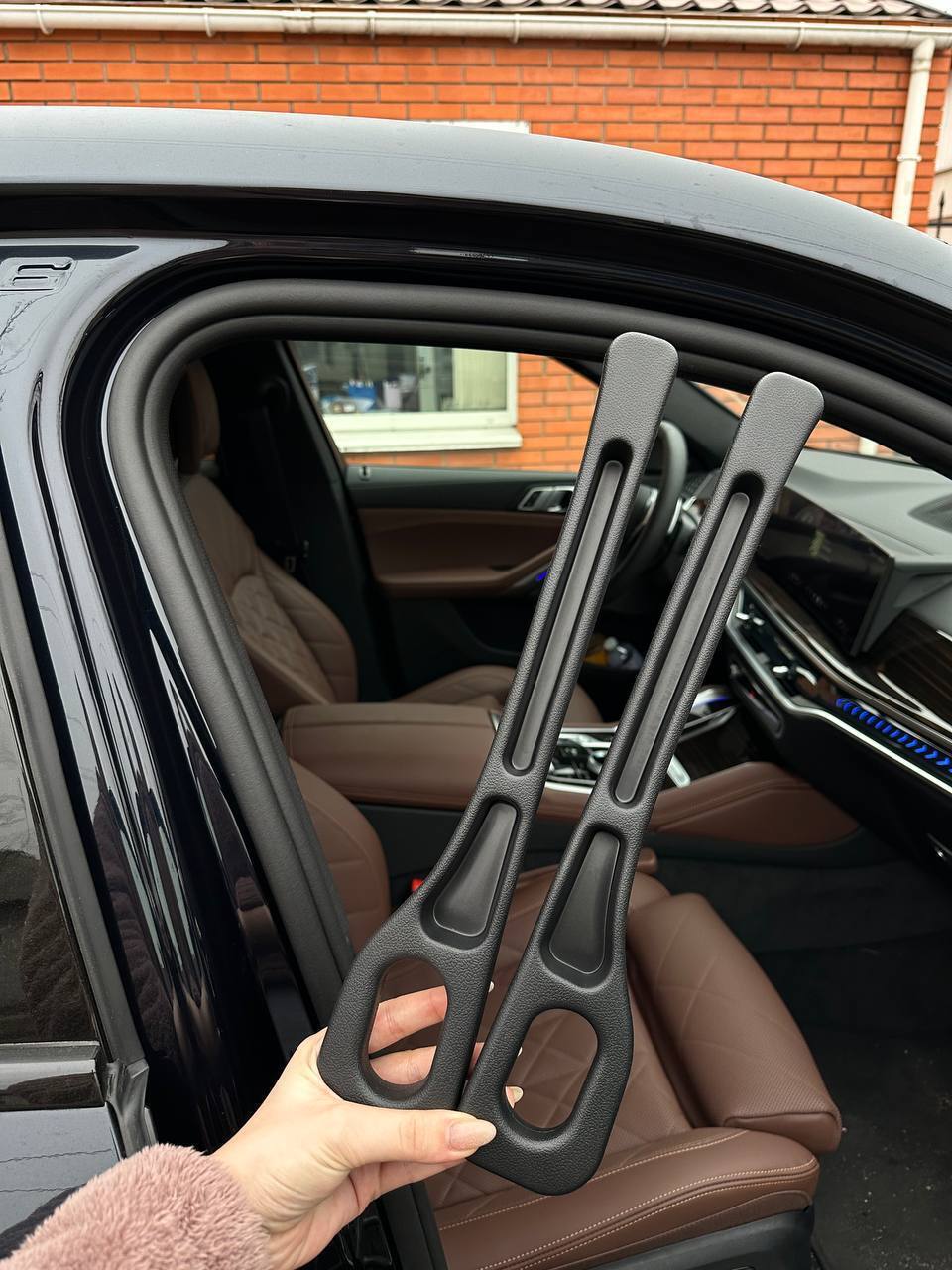 Кріпиться в решітку автомобіля. Має сенсор для автоматичного відкривання та закривання бокових фіксаторів